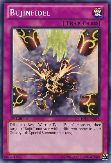 Tribute 1 Beast-Warrior-Type "Bujin" monster, then target 1 "Bujin" monster with a different name in your Graveyard; Special Summon that target.